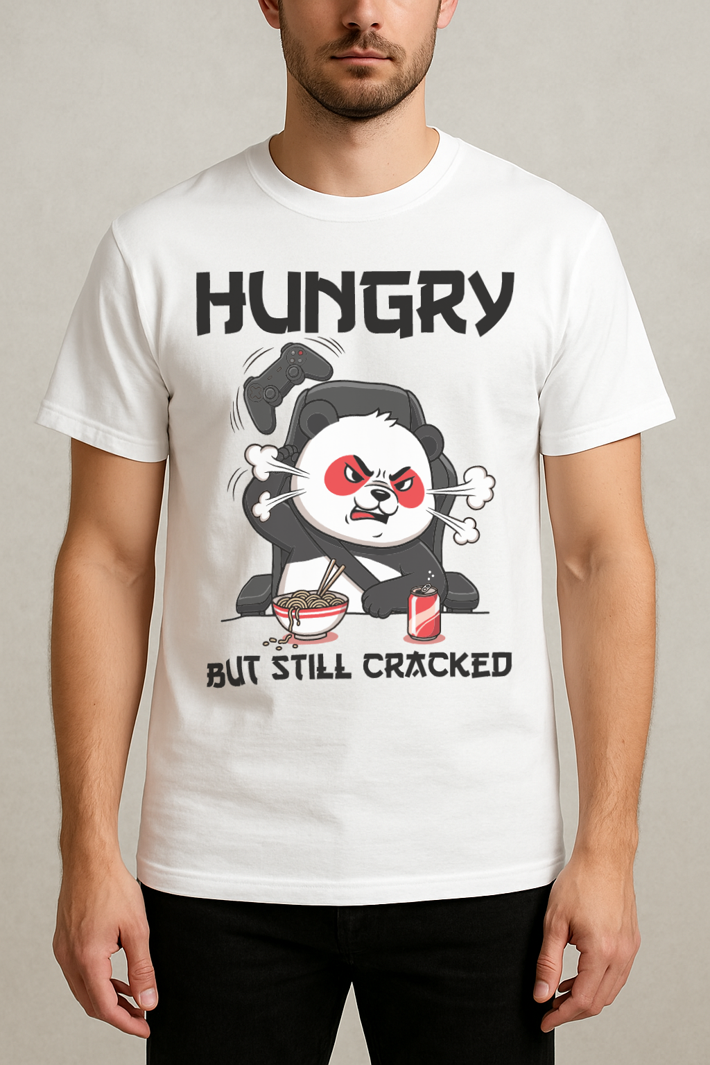 Hungry But Still Cracked – Gamer Panda Graphic Tee